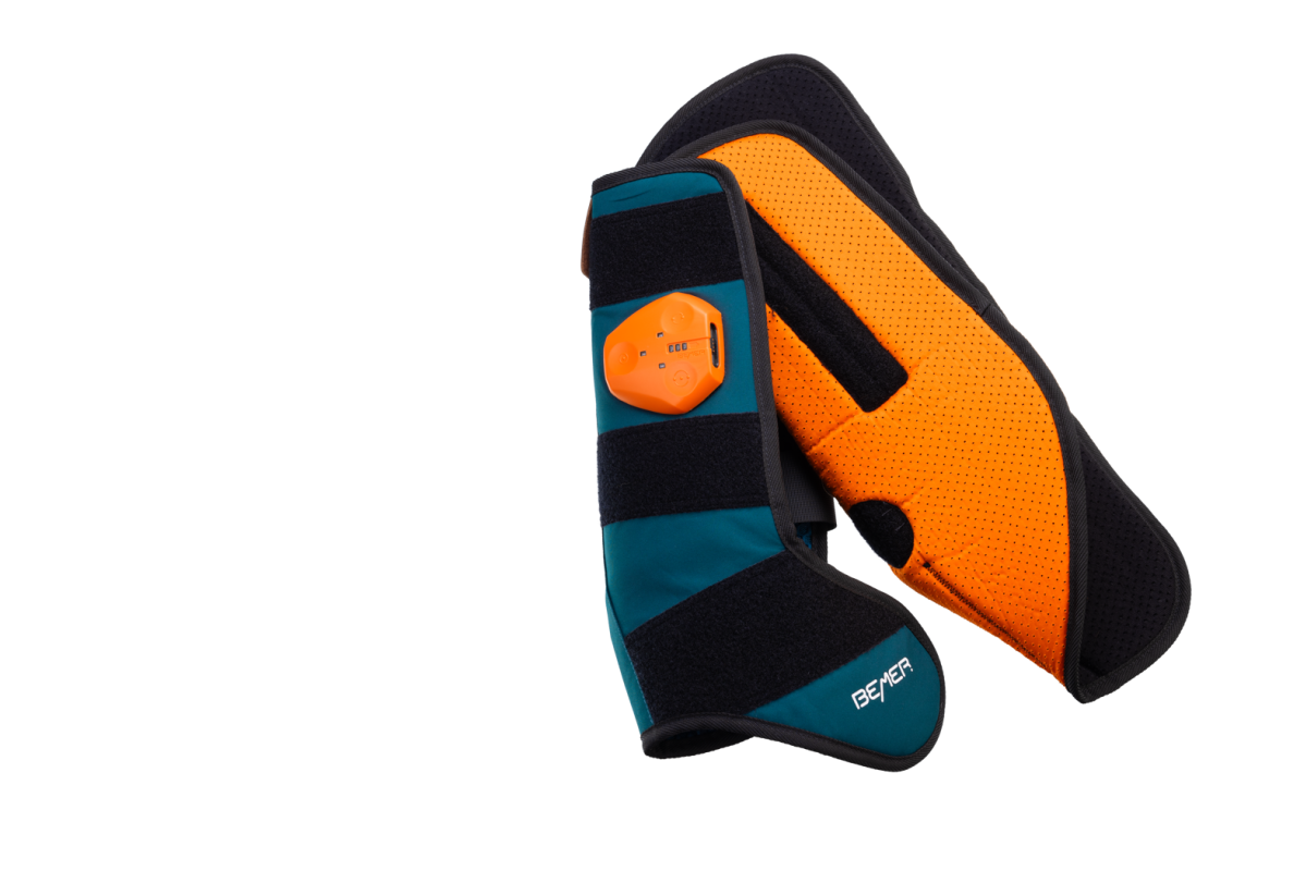 The two cuffs with integrated combination of battery and signal controller for left and right can be used front and rear. They produce a stronger, concentrated signal field for local use. They feature breathable with Cool-Max technology, removable and washable inlets. Rounding out this smart duo is a charger with Y-cable for charging two controllers simultaneously; a set of international adapters and a convenient storage pouch are included.