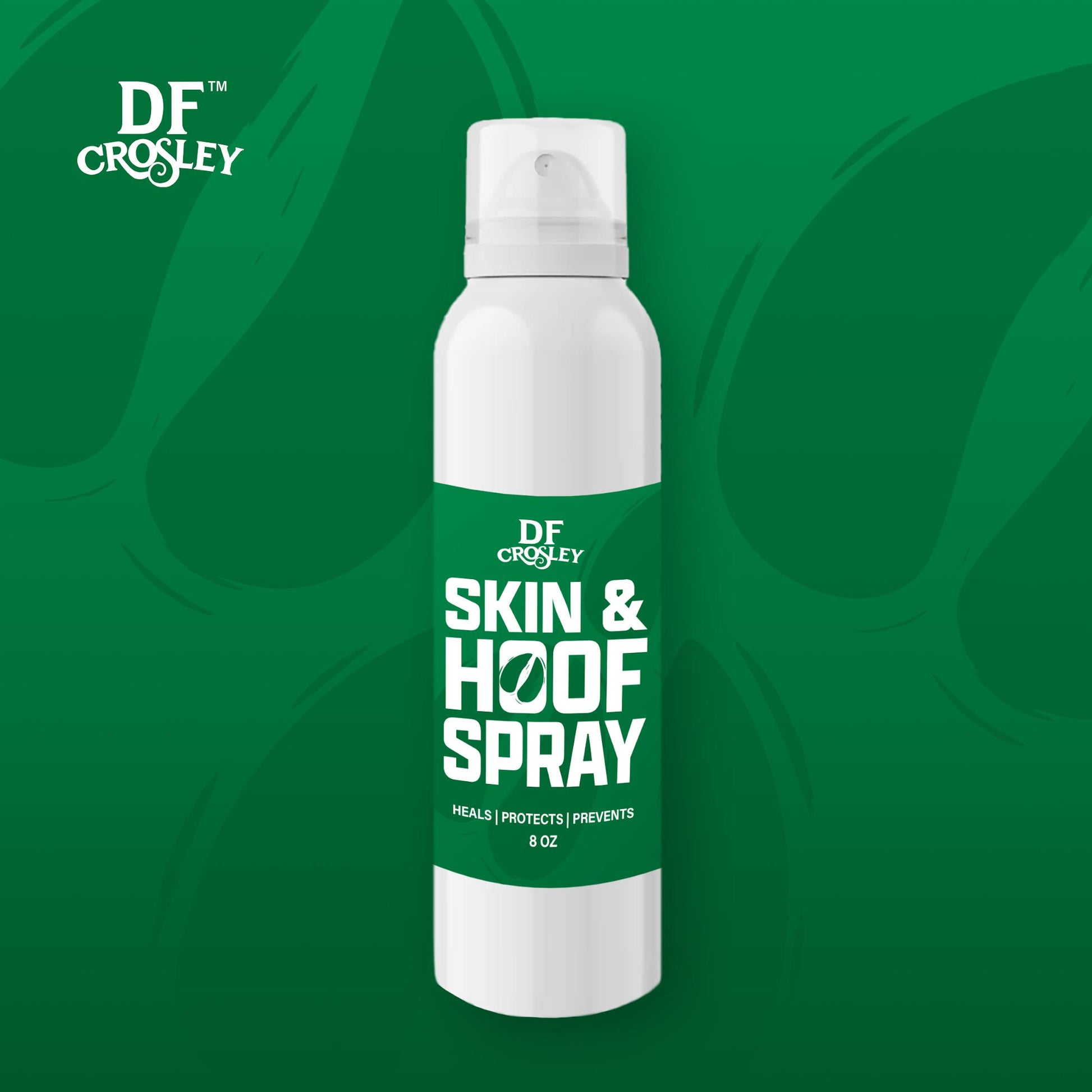 Skin & Hoof Spray forms a flexible barrier, prevents infection, protects skin and hooves and promotes healing on all animals. Topically applied, D.F. Crosley’s Skin and Hoof Spray provides longer lasting residual protection. A blend of ionized zinc and copper stops fungal and bacterial growth. Natural Tea Tree Oil soothes tissue and emollients provide residual properties. Effective against many fungal and bacterial infections including ringworm, thrush, white line disease, digital dermatitis, scald, foot rot and multiple forms of staph.